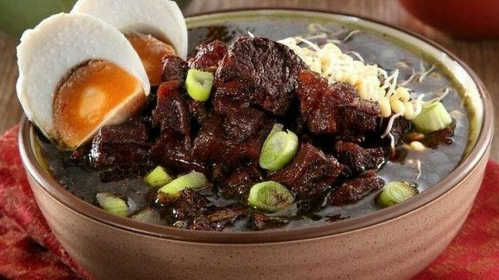 Culinary Portal – Rawon adalah sup berwarna hitam dengan aroma khas yang membuat siapa pun sulit menolak kelezatannya. Sup ini disajikan dengan potongan daging sapi lembut, taoge segar, kerupuk udang renyah, dan telur asin yang gurih, biasanya disantap bersama nasi hangat serta sambal pedas. Rasa khasnya muncul dari campuran bumbu-bumbu tradisional seperti bawang merah, bawang putih, ketumbar, serai, lengkuas, garam, dan yang paling penting keluak. Keluak atau pucung adalah biji berwarna hitam yang menjadi kunci warna sekaligus cita rasa unik pada Rawon. Sup hitam ini dikenal luas sebagai black soup oleh masyarakat mancanegara. Tidak hanya dinikmati di Jawa Timur, Rawon juga sudah melintasi batas budaya dan diterima di berbagai daerah bahkan dunia. Kombinasi rasa gurih, segar, dan sedikit pahit ini menghadirkan pengalaman kuliner yang tak tertandingi. Tidak heran jika banyak orang rela antre untuk menikmatinya.